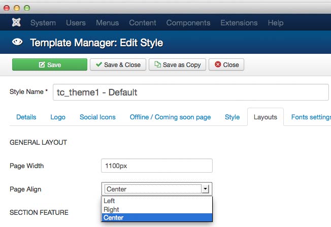 - For SECTION MAIN CONTENT select the style for 2 columns and 3 columns.