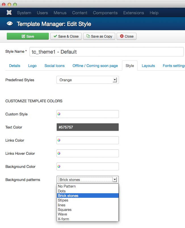 Select Background patterns you like to have in your site. You can let it also blank.