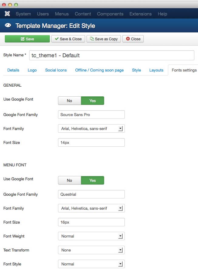 Select Yes in Use Google Font if you want to use google fonts. Otherwise select No.