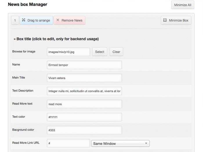 News box module for joomla 5, joomla 4 and joomla 3. In the download package are included 2 different versions. Both versions have the option to display the items in slider or in wall mode. The module loads content or custom items