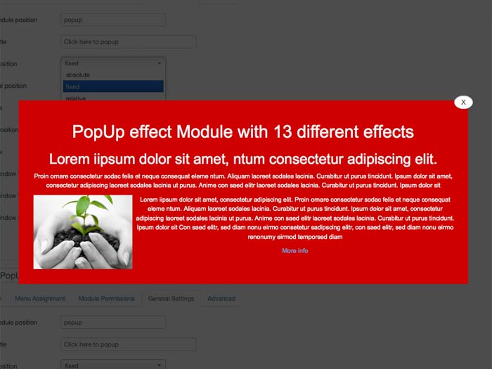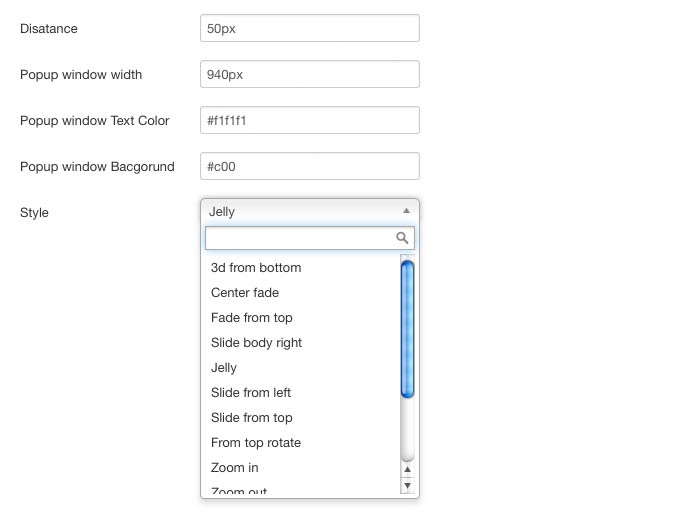 • Available in 13 different effects: 3d from bottom, Center fade, Fade from top, Slide body right, ,Jelly, Slide from left, Slide from top, From top rotate, Zoom in, Zoom out, Slide body middle, Left to right and Border animate.