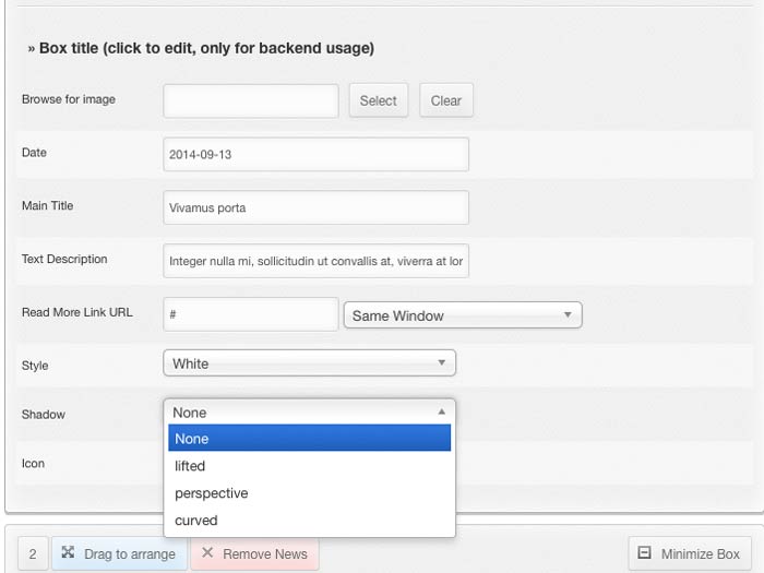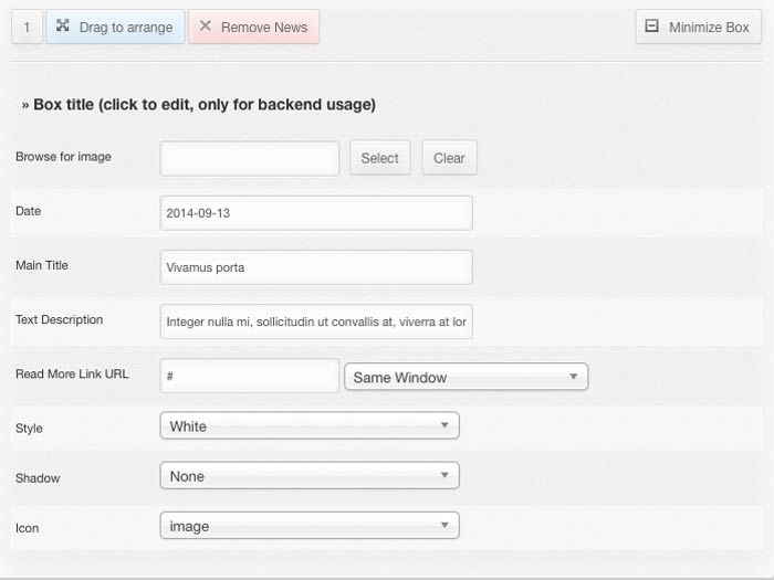 There are 2 timeline modules. One loads content from articles (check demo) and the other loads custom text and images ( check demo)